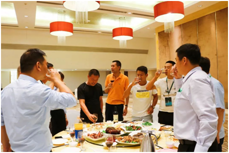 参观过后,客户朋友在工作人员带领下返回酒店参加晚宴,愉快的晚宴拉近了彼此之间距离,大家举杯换盏,交流经营经验,探讨业务流程。希望此次会议能增进经销商、加盟商与总部之间的交流,真正成为携手共进的“信义人”。